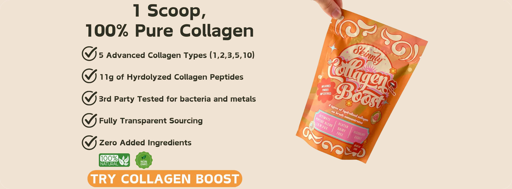 You have enough to worry about nowadays. The last thing you need to worry about is if your collagen is contaminated or safe to take. Skinny Collagen is third-party tested against harmful contaminants and heavy metals. Even our pouches aren’t lined with plastic, so you can confidently take your collagen every day!